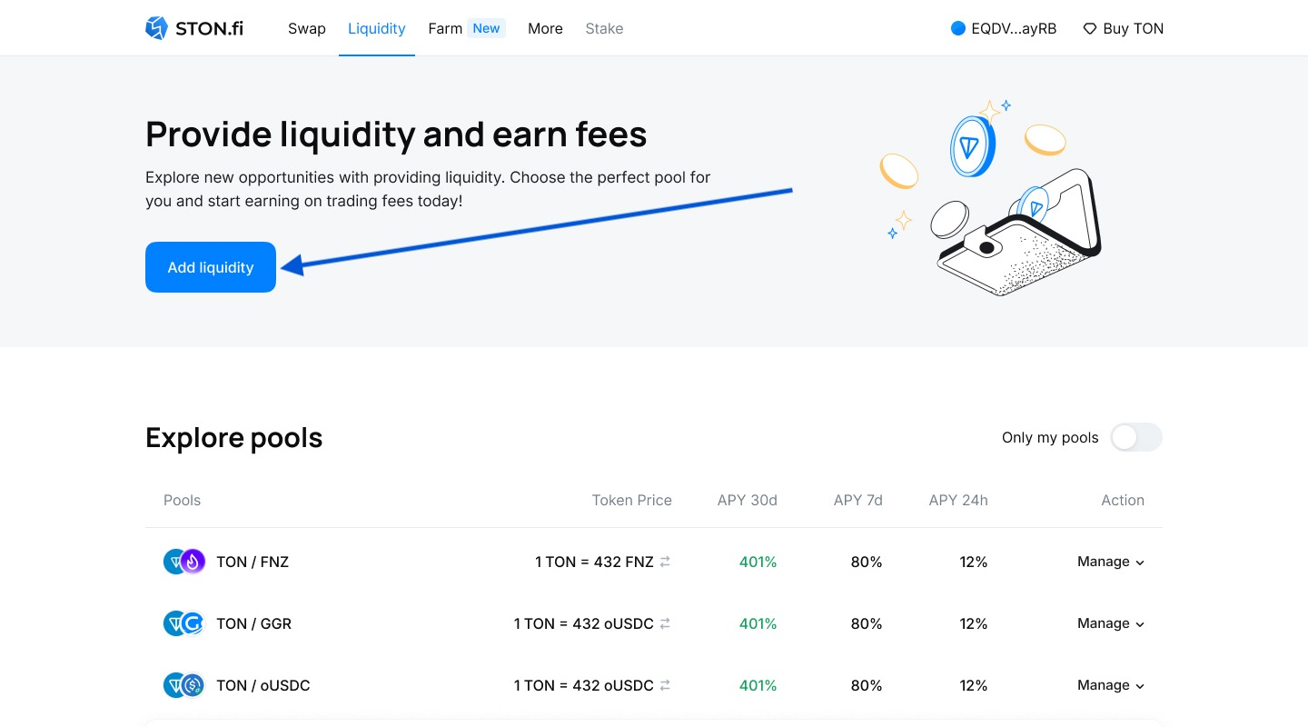 Нажмите на кнопку "Add liquidity"